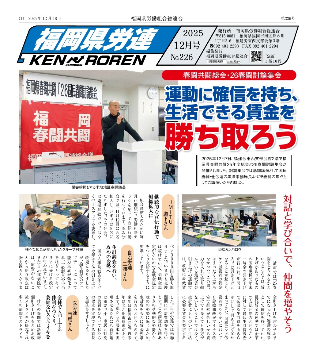 ・2025.12.18/第226号 運動に確信を持ち、生活できる賃金を勝ち取ろう!